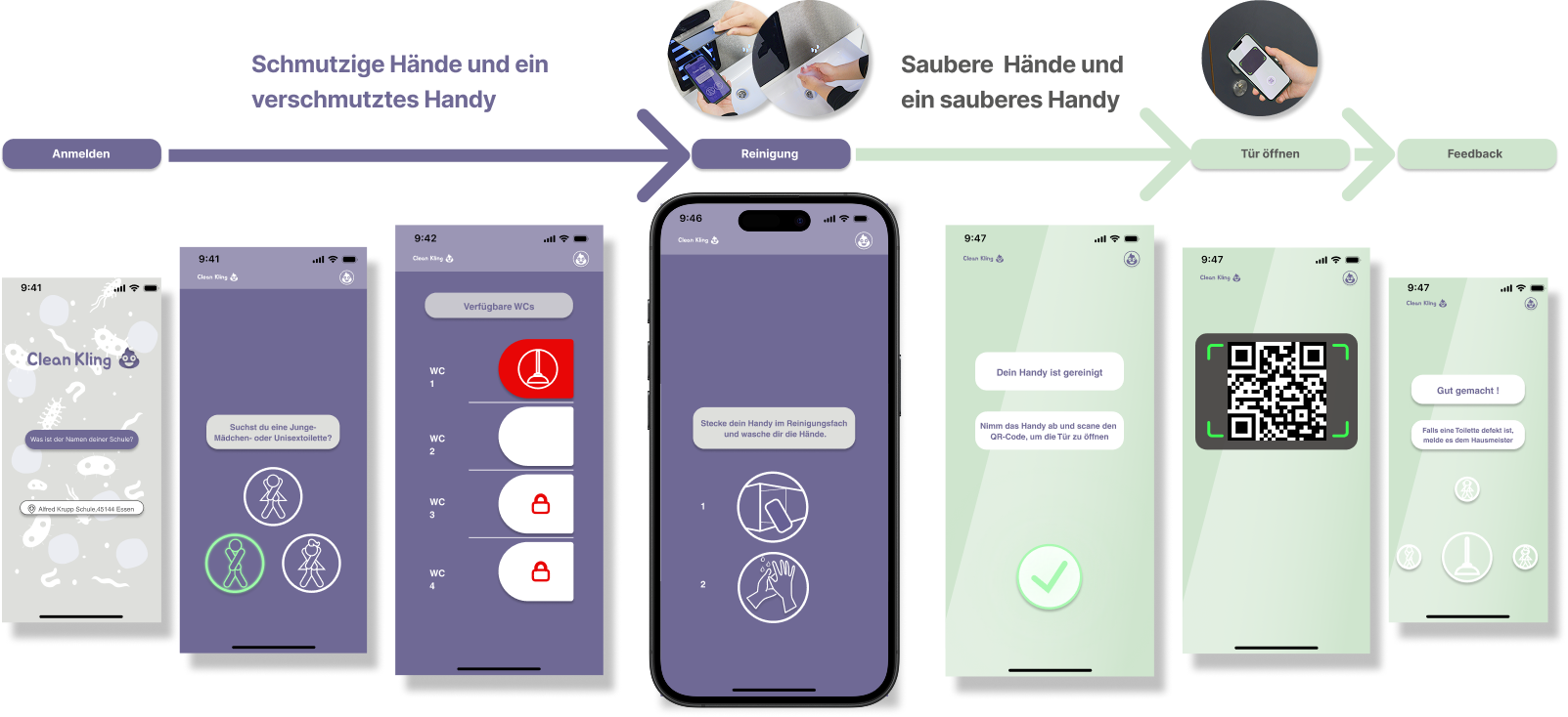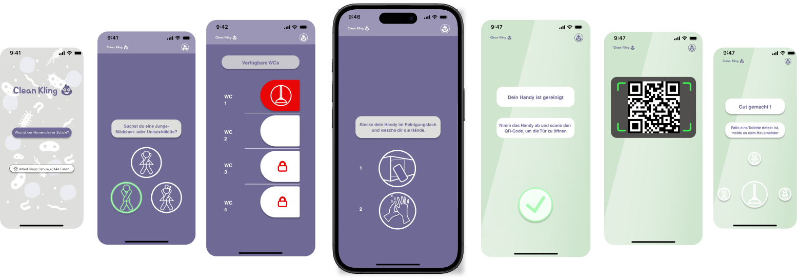 Viele Schultoiletten sind unhygienisch und unübersichtlich. Schüler:innen wissen oft nicht, welche Toiletten frei oder defekt sind, was zu Chaos und Unzufriedenheit führt. Clean Kling soll den Toilettenbesuch an Schulen hygienischer, effizienter und transparenter gestalten.